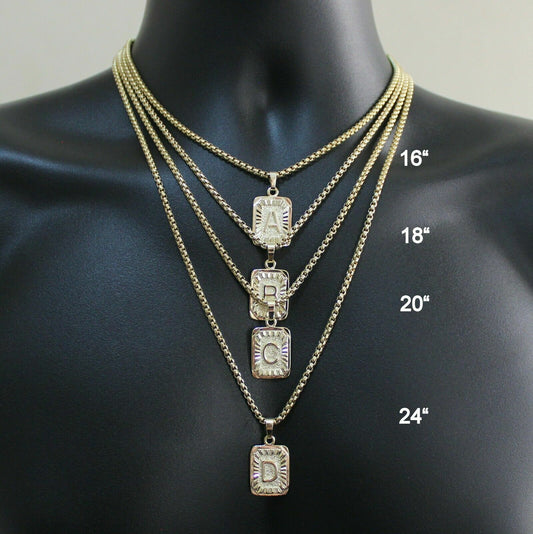 Yellow Gold Plated Stainless Steel Initial Letter A-Z Pendant Necklace Box Chain