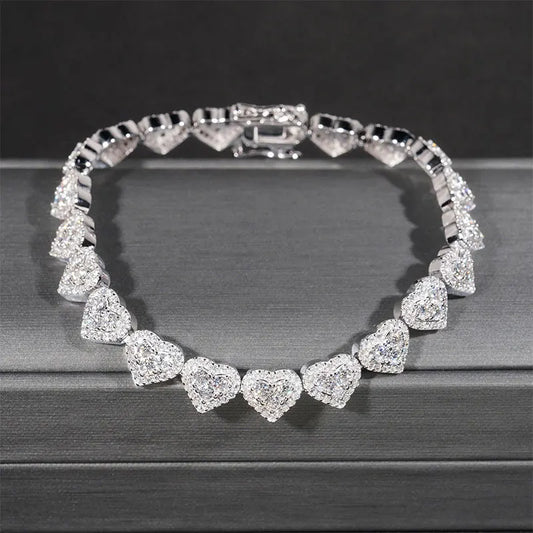 K.NOBSPIN D VVS1 All Moissanite Heart Bracelet Necklace 925 Sterling Silver Prom Party Fine Jewelry with GRA Bracelets for Women