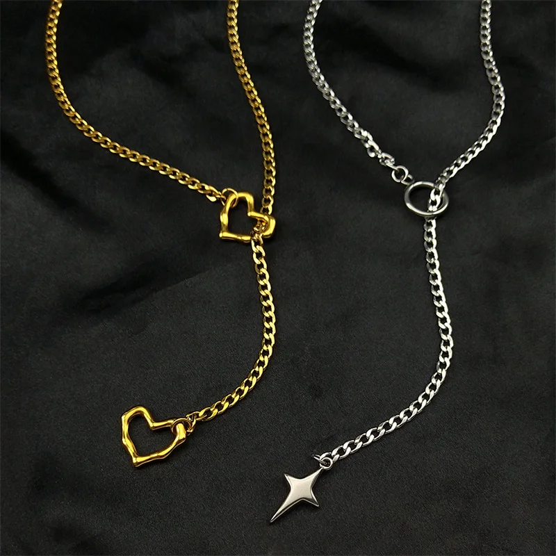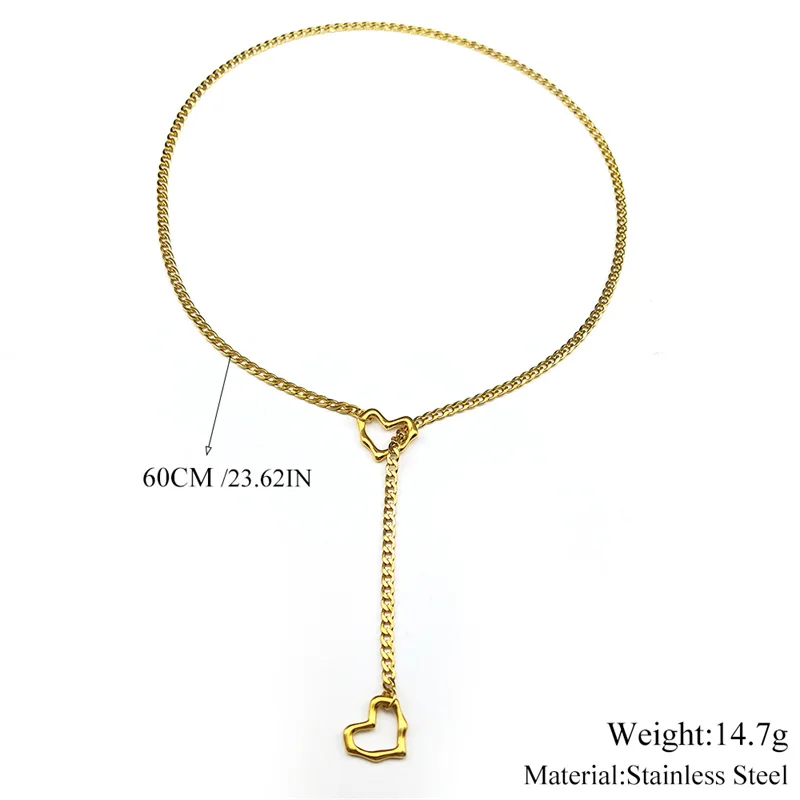 - Heart O-ring Long Chain For Women Men Punk Rock Necklace Stainless Steel Key lock Necklaces Adjustable Y-Necklace Jewelry Gift