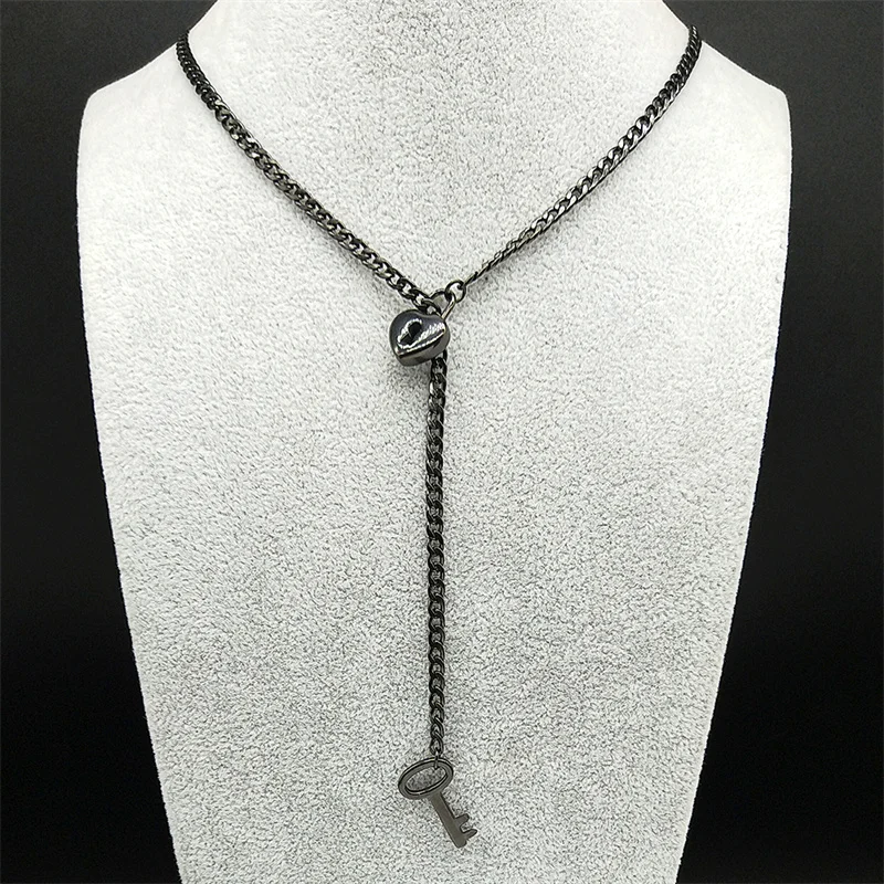 - Women Men Punk Rock Necklace Stainless Steel Key lock Necklaces Adjustable Y-Necklace Jewelry Gift
